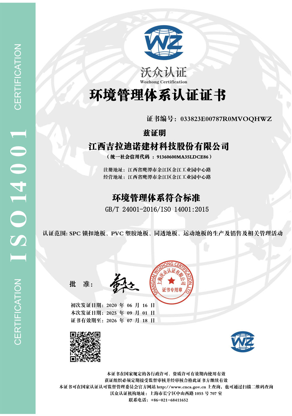 環(huán)境管理體系認(rèn)證證書
