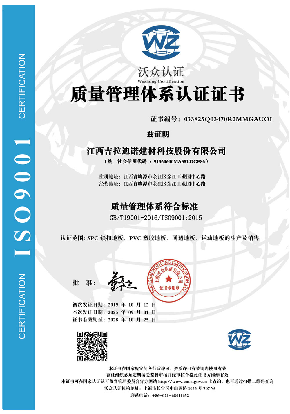 質(zhì)量管理體系認(rèn)證證書
